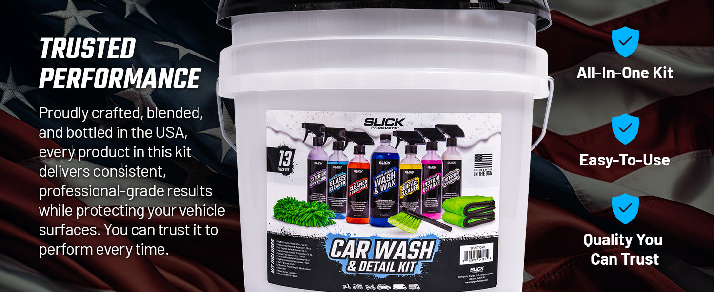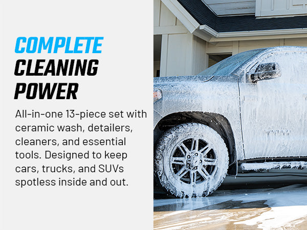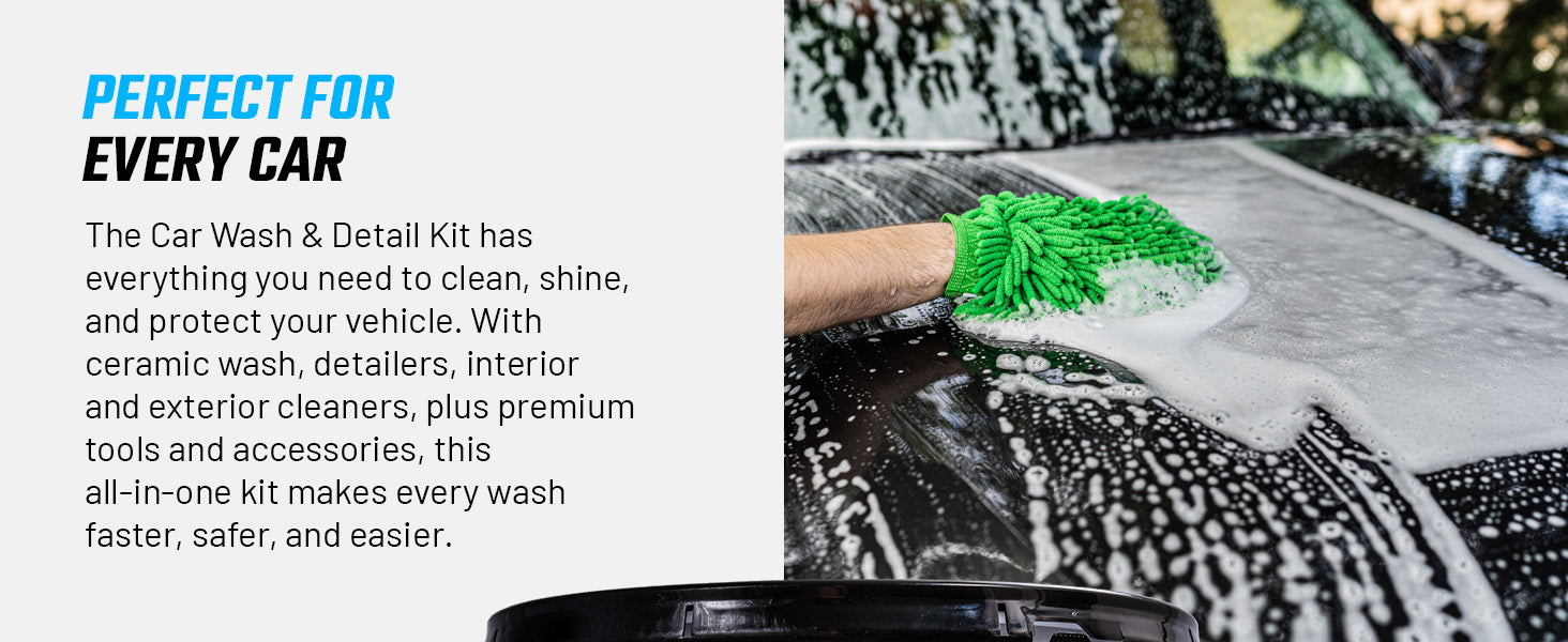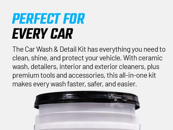 The Car Wash & Detail Kit (13 Piece) is designed with everything you need to keep your car, truck, motorcycle, RV, trailer, or other automotives vehicles looking their best. These high-quality detailing products are guaranteed to make your next cleanup faster, safer, and easier.