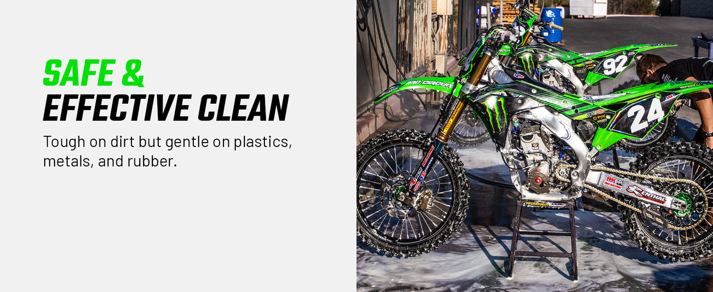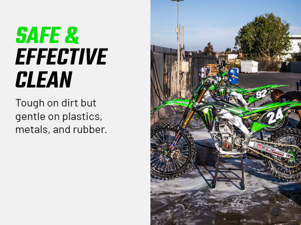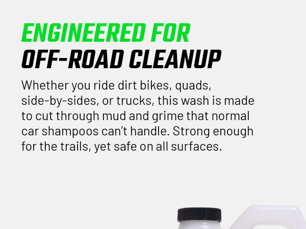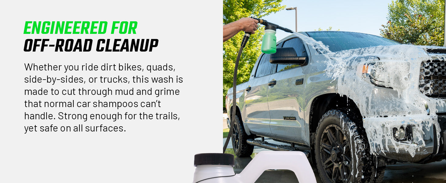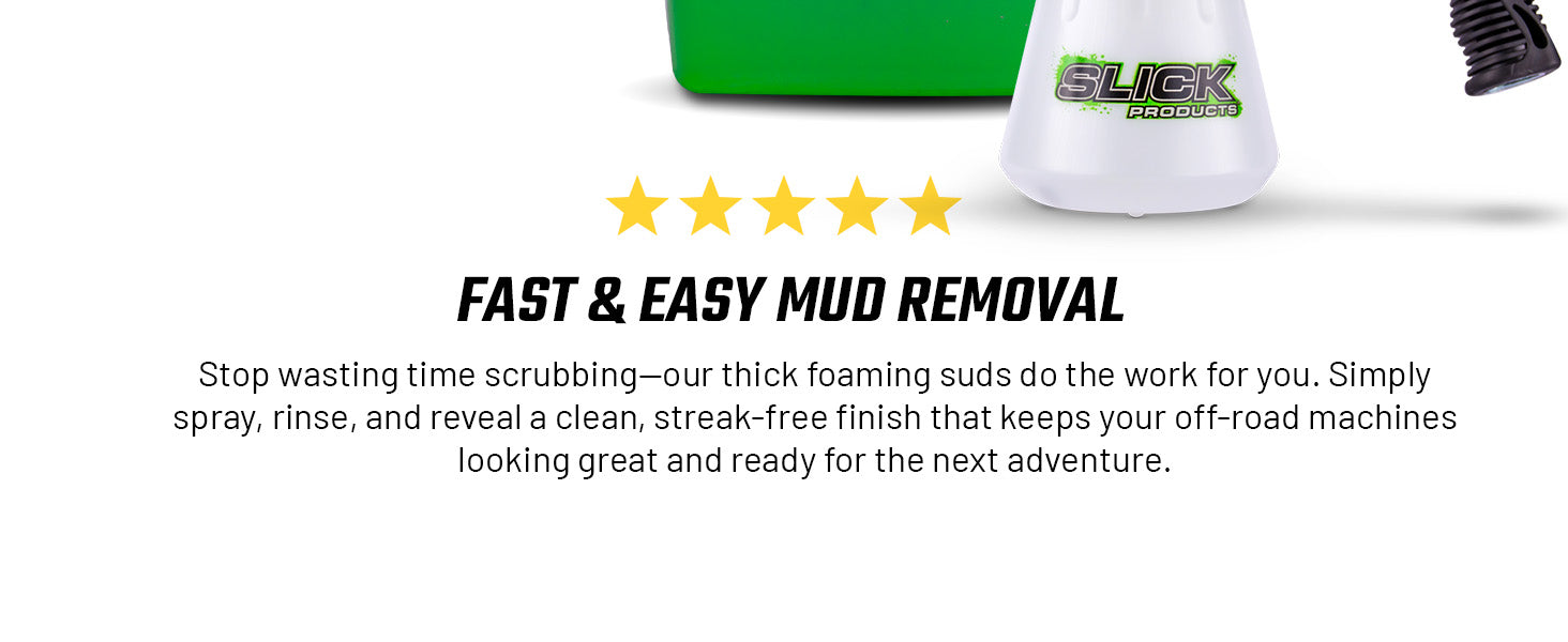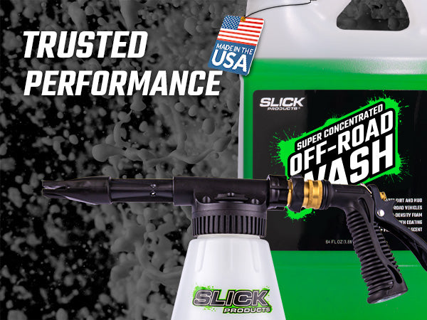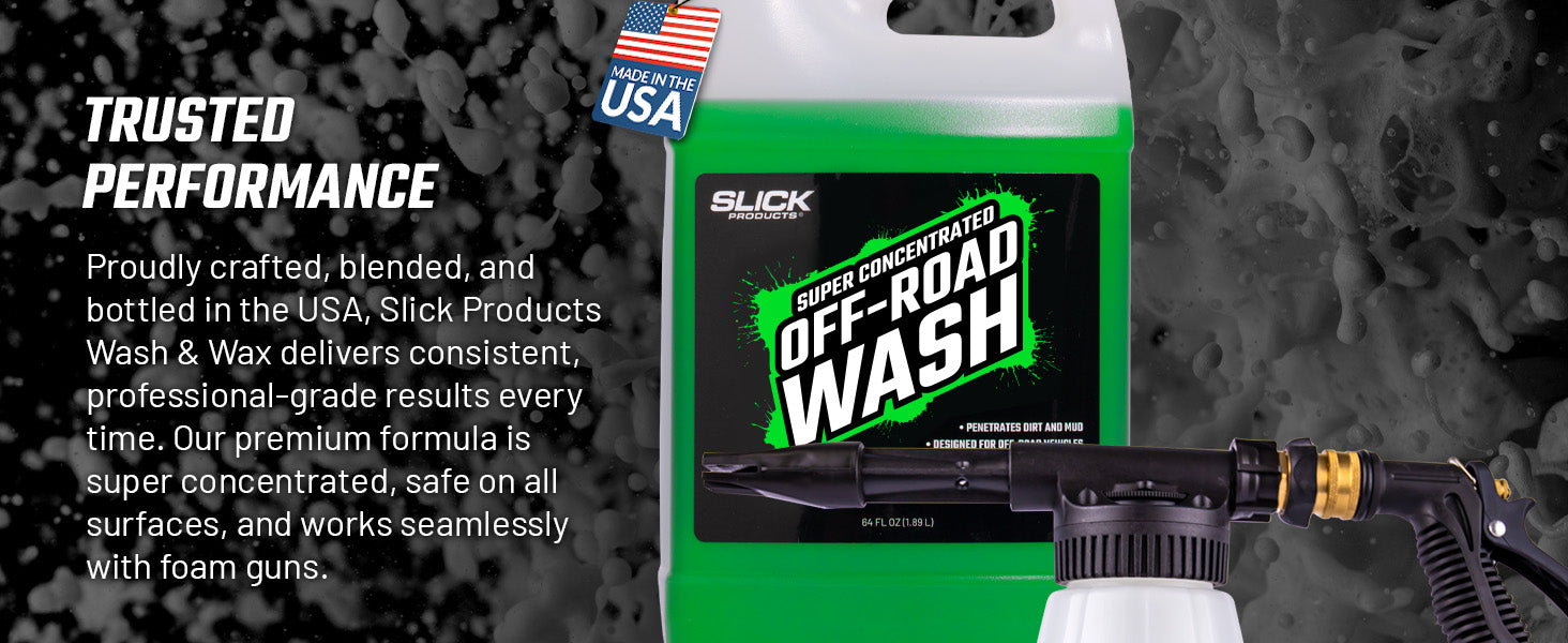 This Slick Products Off-Road Wash + Foam Gun Bundle is perfect for your dirt bike, quad, off-road truck, jeep, or any other vehicle that hits the mud. Includes a half-gallon of our concentrated Off-Road Wash and our easy-to-use Garden Hose Foam Gun which quickly attaches to any standard garden hose. Simply fill the foam container with water, add 4-8 ounces of the soap, and start washing.