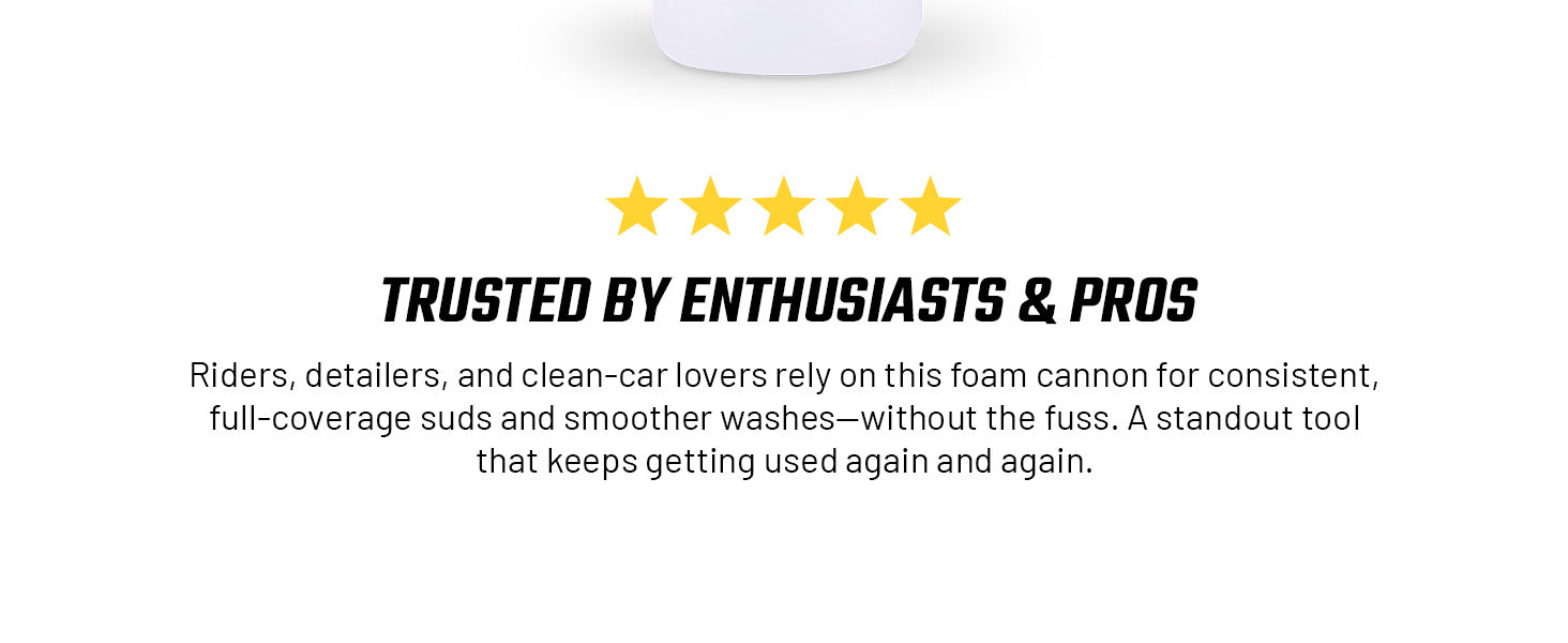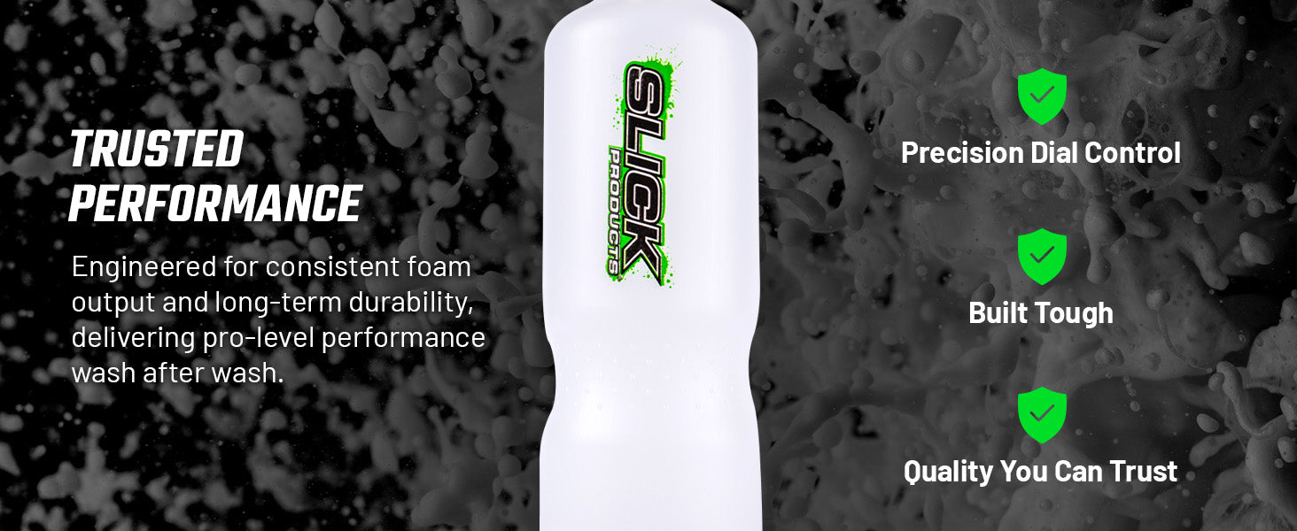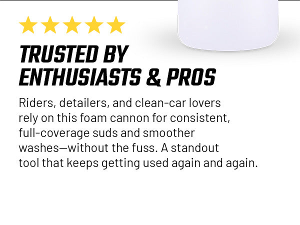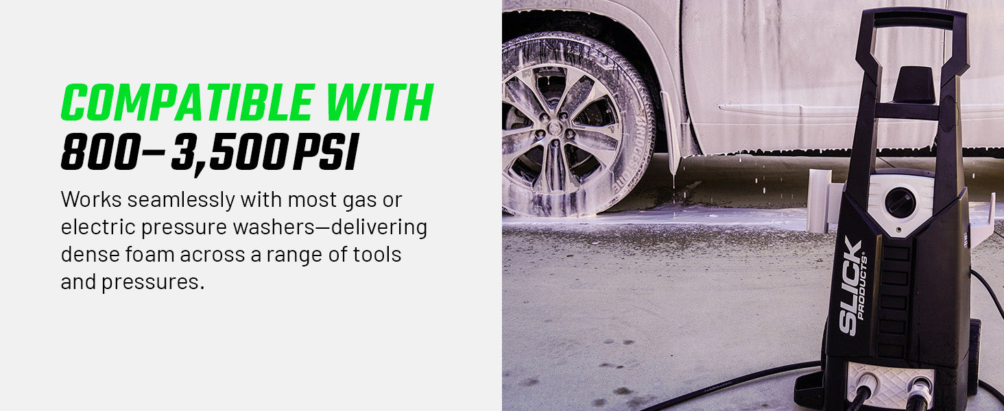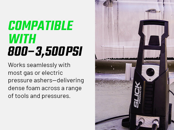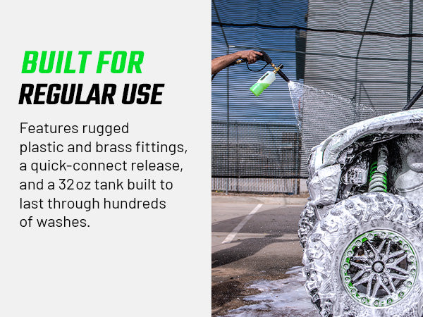 Durable Foam Cannon attaches to pressure washer wand with the 1/4" quick connect inlet and designed to quickly mix our concentrated soap into a foamy wash.