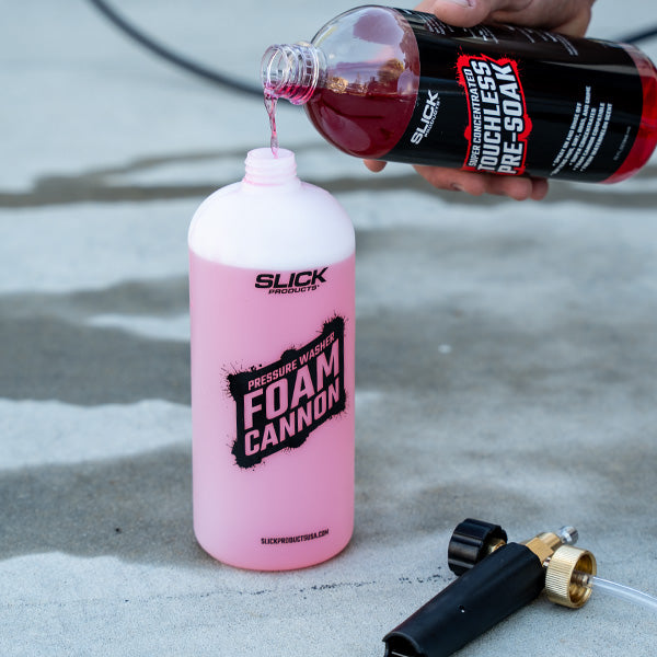 Loosen dirt, mud, and grime with Slick Products Super-Concentrated Touchless Pre-Soak. Designed for cars, trucks, SUVs, and off-road vehicles, this foaming solution penetrates every curve and crevice, safely loosening buildup. Spray on, let it sit, then wash off, the perfect first step in your washing process. Made with biodegradable, eco-friendly materials and proudly bottled in the USA, it delivers fast and easy results.